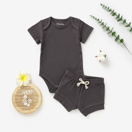 25%- Organicסט בגד גוף ומכנס קצר מכותנה אורגנית Graphite