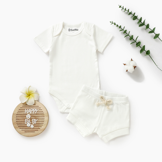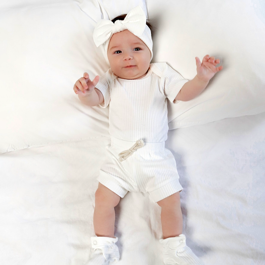 25%- Organicסט בגד גוף ומכנס קצר מכותנה אורגנית Snow
