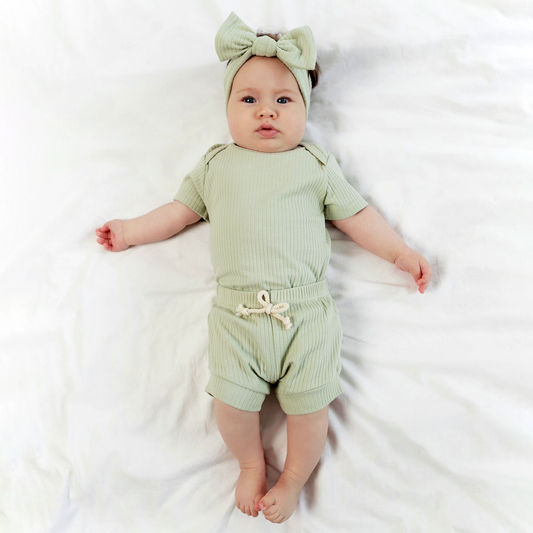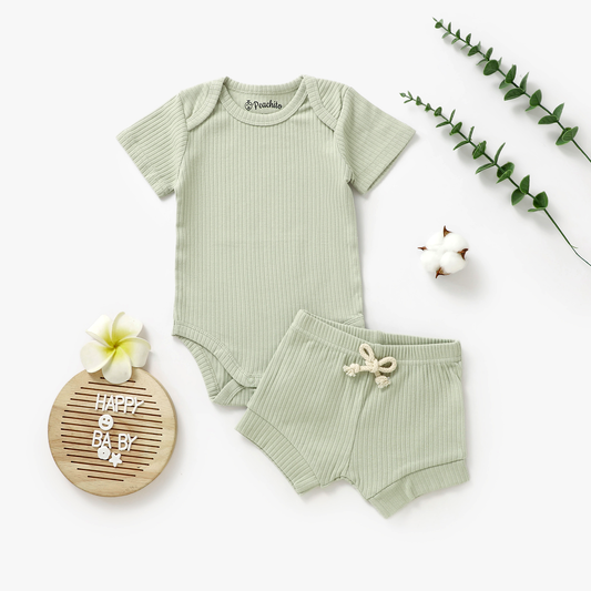 25%- Organicסט בגד גוף ומכנס קצר מכותנה אורגנית Mint