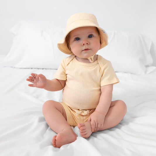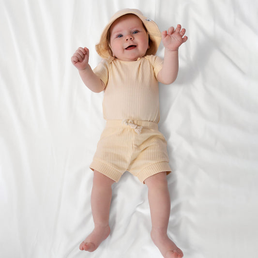 סט בגד גוף ומכנס קצר מכותנה אורגנית Cream