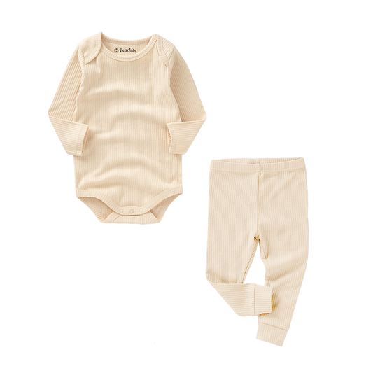 סט בגד גוף ומכנסיים מכותנה אורגנית Cream