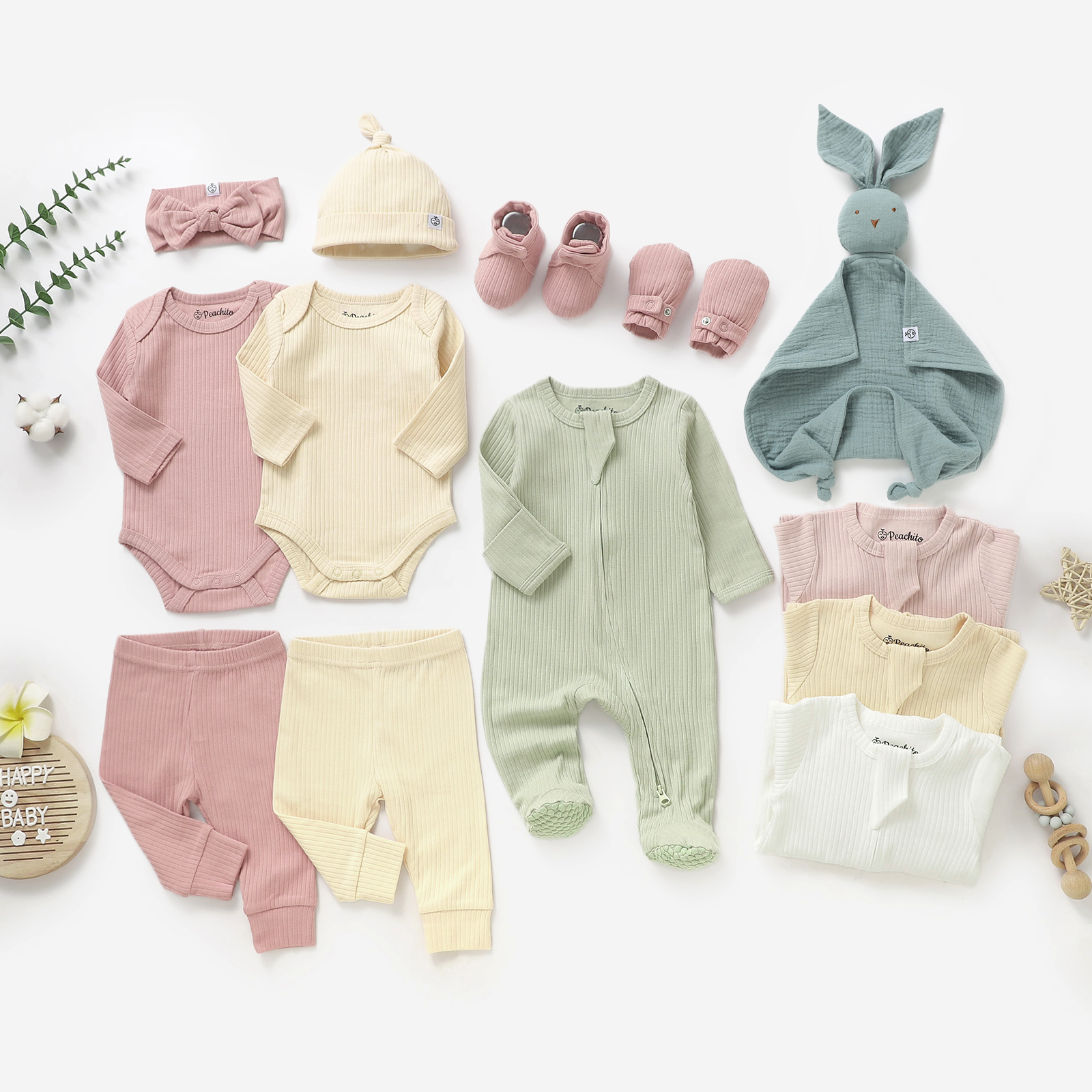 פריטים מכותנה אורגנית רכה ונעימה, שמשתלבים יחד למראה מתוק ונוח מהיום הראשון.