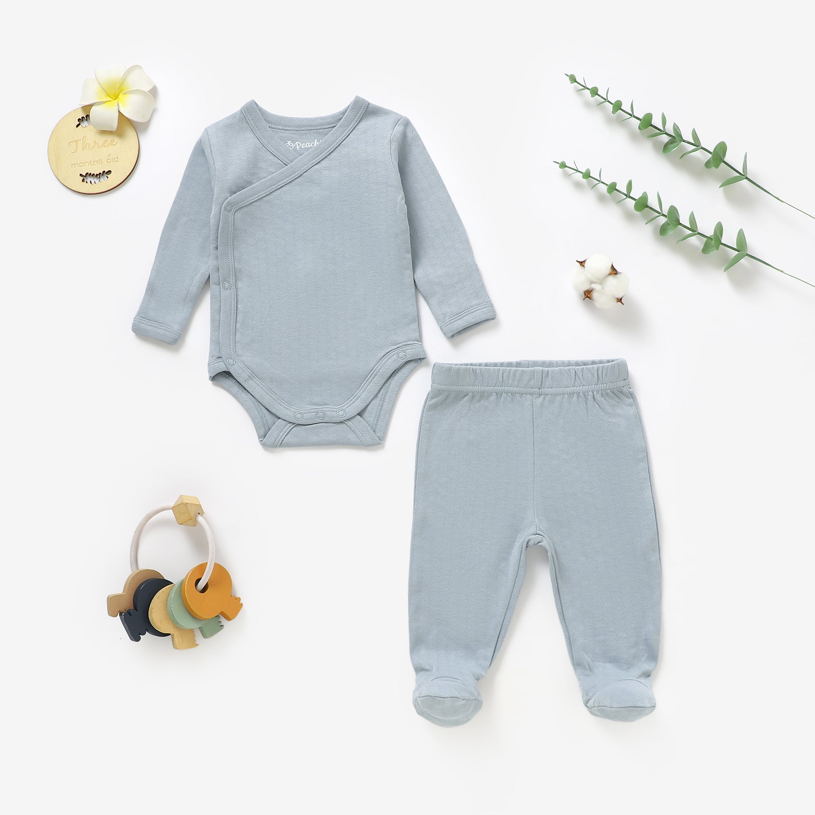 סט בגד גוף מעטפת ורגלית מכותנה אורגנית Sky