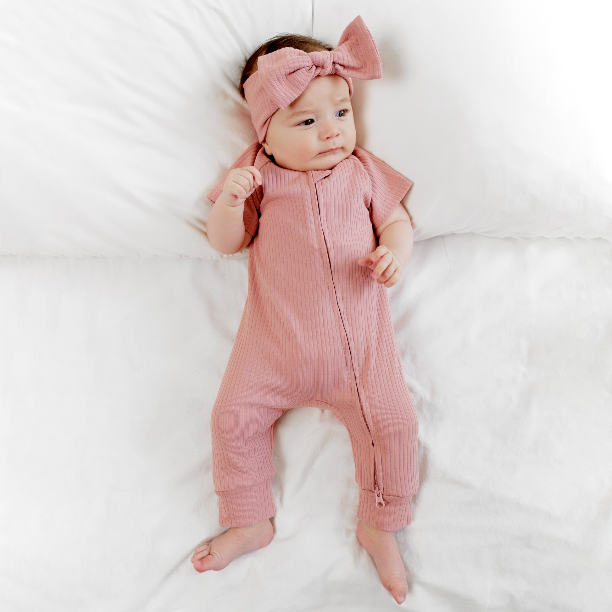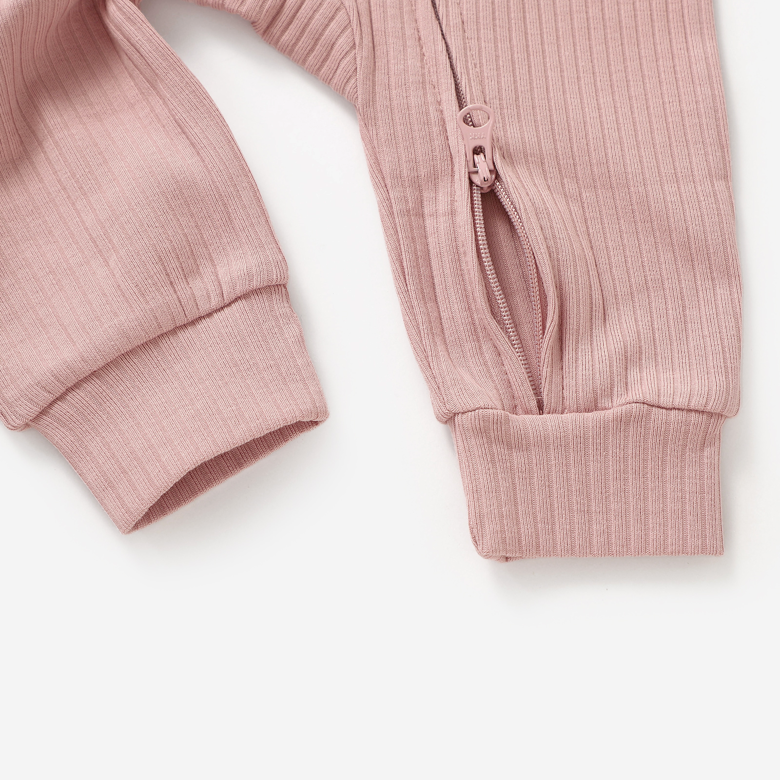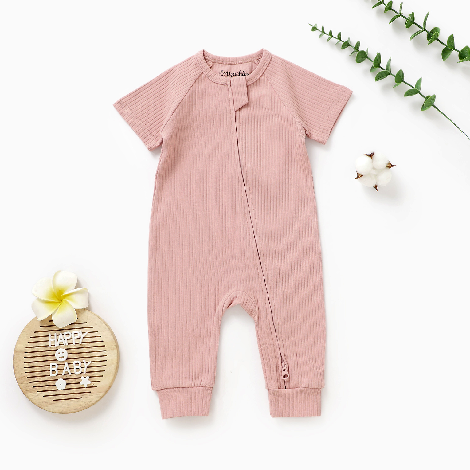 אוברול שרוול קצר עם רוכסן דו כיווני מכותנה אורגנית Blush