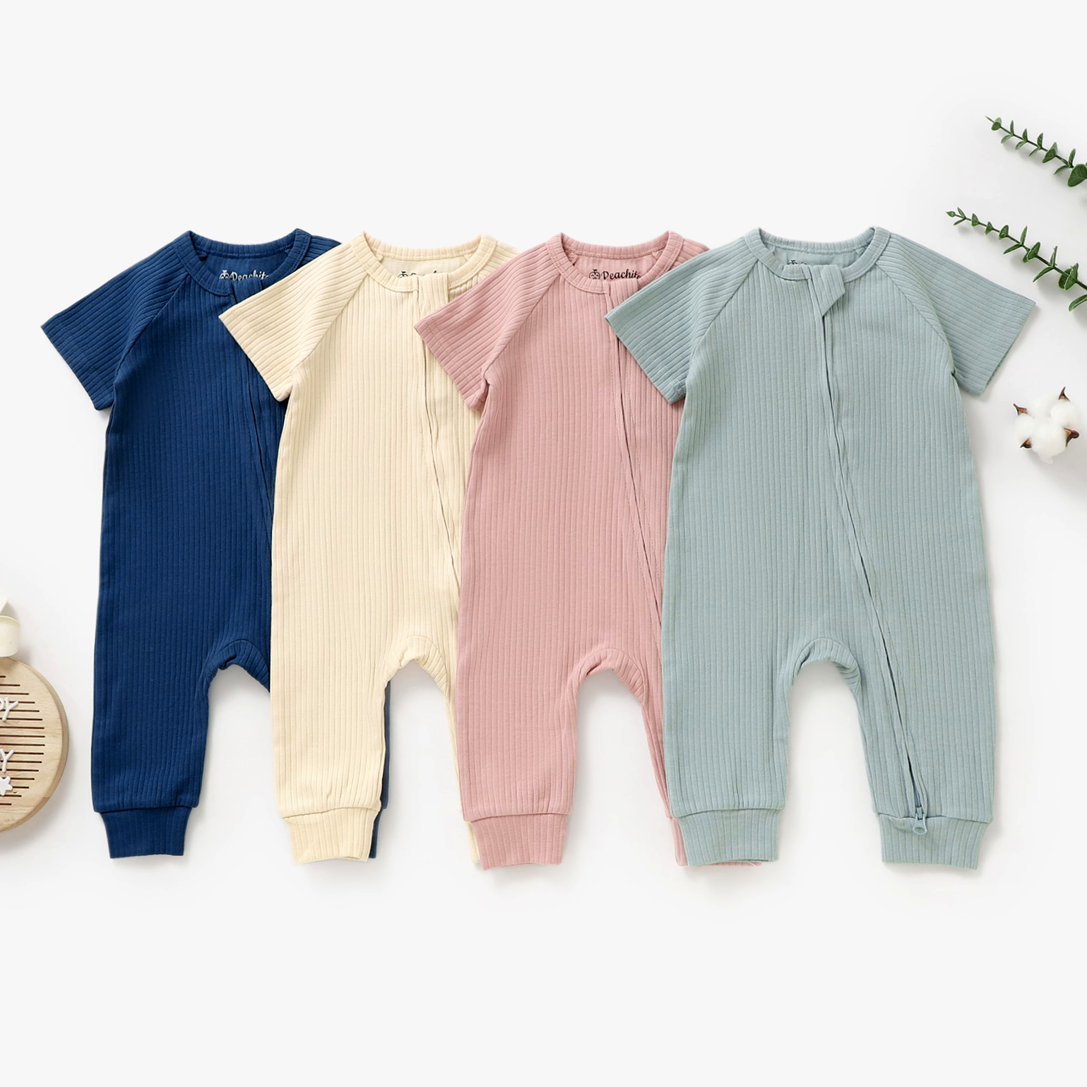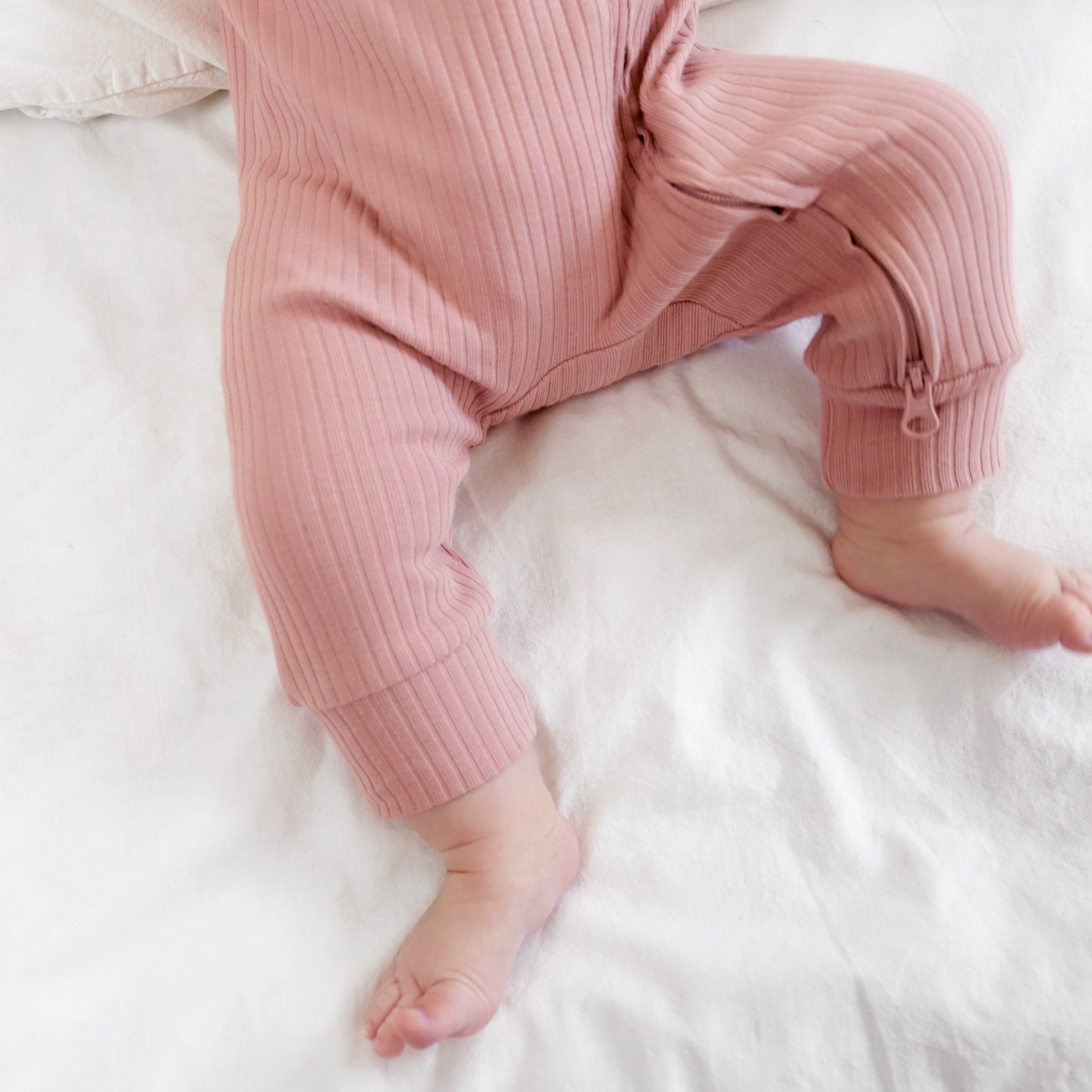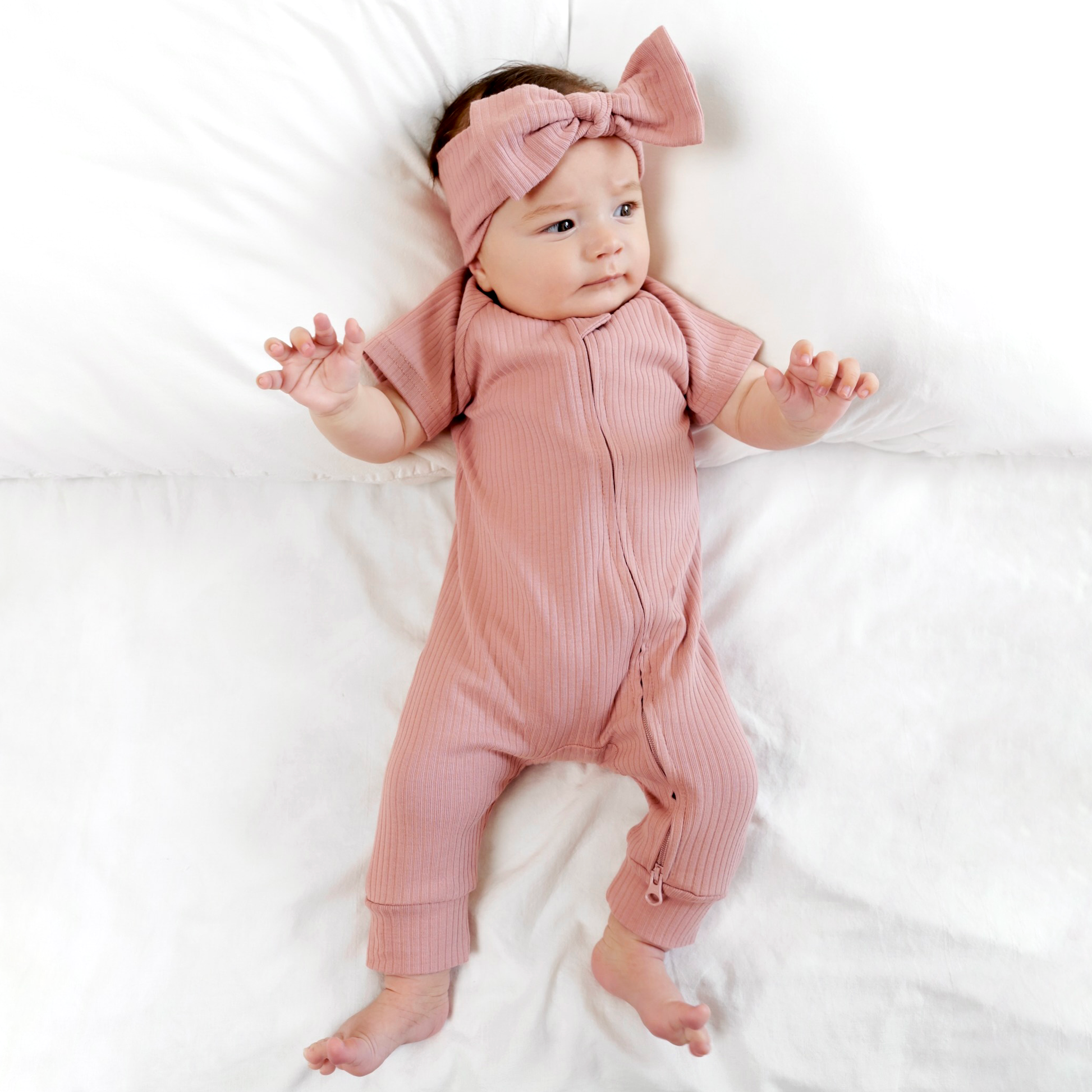 אוברול שרוול קצר עם רוכסן דו כיווני מכותנה אורגנית Blush